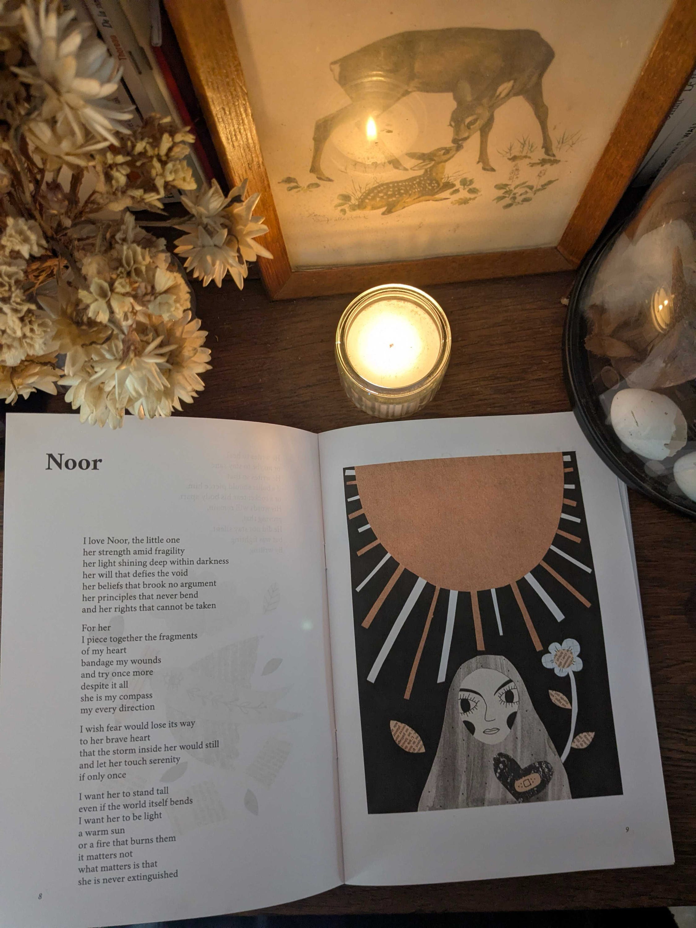 With what paper remains unburned and the last drops of ink, Noor documents her survival. This zine is her way to unravel the impact of war on her mind and soul; a testament to what was endured and what still persists. From her belief that everyone must resist by any means, she has found in her writings a weapon of resistance: a way to expose the occupier’s brutality to the world.