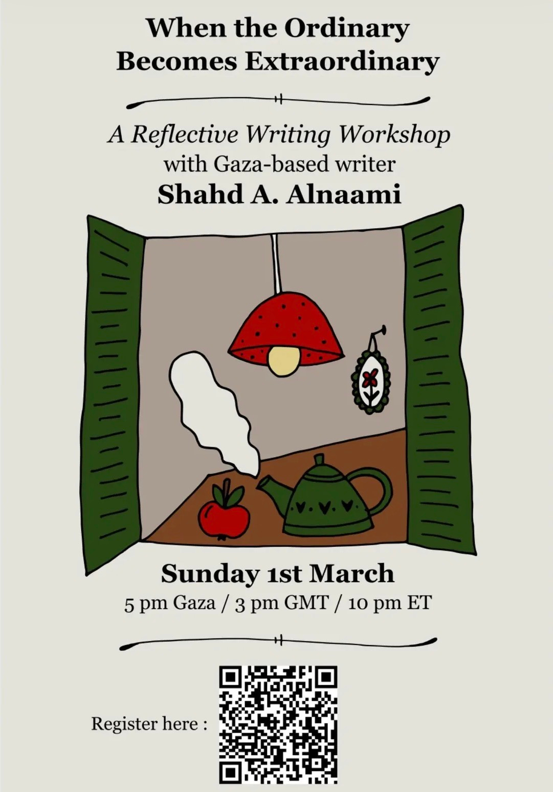 Register now for another great workshop with Shahd Alnaami, an independent effort of the author that we are so happy to promote.